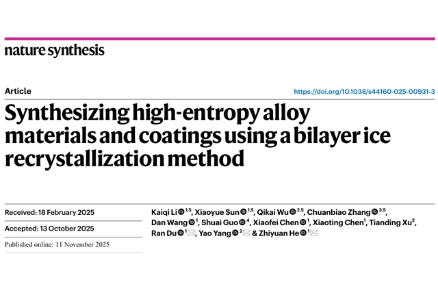 近日,北京理工大学材料学院贺志远教授团队联合材料学院杜然教授以及西湖大学杨尧助理研究员,在低温冰介导制备高熵合金及其控冰...